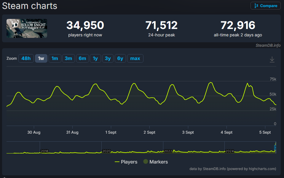 Doczekaliśmy się! Hollow Knight: Silksong wylądował i od razu zrobił szum: gra trafiła 4 września na PC, Xbox Series i PS5, a w dniu premiery wskoczyła do Xbox Game Pass. Na Steamie start był tak gorący, że serwisy chwilowo „dostawały zadyszki”, jednocześnie w grze było już ponad 100 tys. osób, a pierwsze opinie graczy są „przytłaczająco pozytywne”. Dodatkowo Team Cherry ustaliło cenę 74,99 zł, co społeczność uznała za… zaskakująco niską. Jeśli szukasz idealnego pretekstu, by wrócić do metroidvanii – to właśnie ten moment.