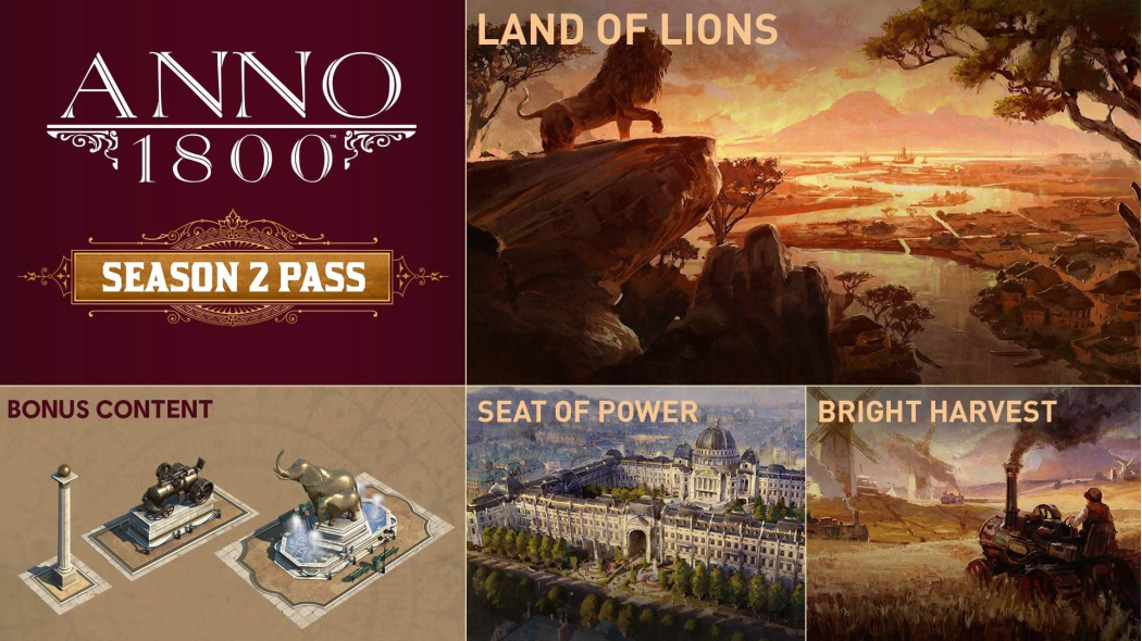 Anno 1800 - Season Pass 2 to drugi pakiet rozszerzeń do legendarnego city-buildera. Otrzymasz trzy główne DLC: Seat of Power, Bright Harvest i Land of Lions, które wprowadzają nowe regiony, budynki i mechaniki. Buduj monumentalne pałace, rozwijaj rolnictwo i kolonizuj egzotyczne ziemie Enbesy. Setki nowych możliwości rozwoju Twojego imperium!