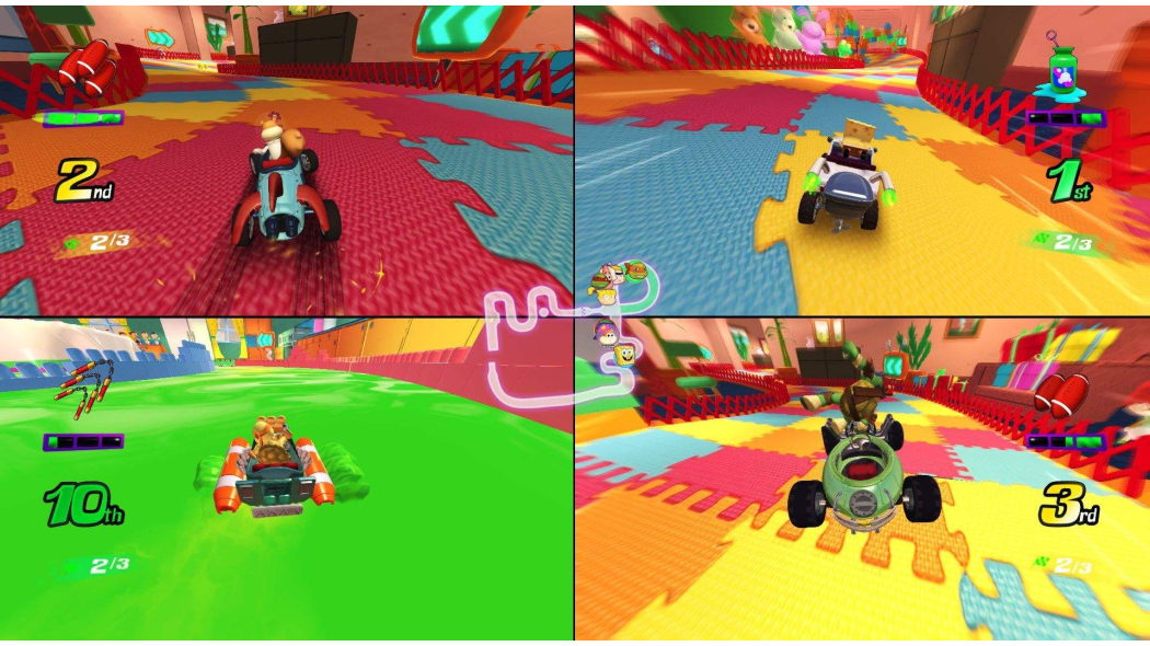 Ścigaj się ulubionymi bohaterami kreskówek w Nickelodeon Kart Racers na Nintendo Switch! Wybierz postacie z takich hitów jak SpongeBob, Wróżkowie Chrzestni czy Wojownicze Żółwie Ninja i rywalizuj na kolorowych torach inspirowanych światem Nickelodeon. Gra oferuje tryb kariery, wyścigi wieloosobowe i możliwość personalizacji gokartów.